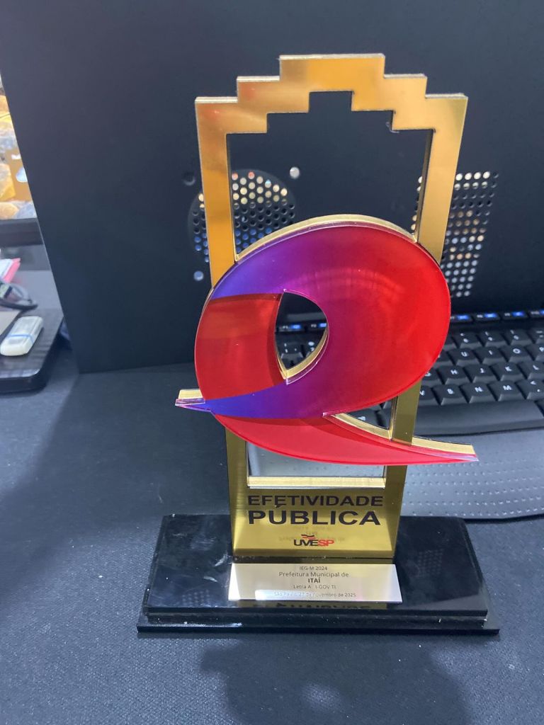 Itaí foi destaque na tarde da quinta-feira, dia 27, durante a Solenidade de Entrega do Troféu Efetividade Pública, realizada no Auditório Franco Montoro, na Assembleia Legislativa do Estado de São Paulo. A homenagem, concedida pela União dos Vereadores do Estado de São Paulo (UVESP), reconhece o desempenho do município no Índice de Efetividade da Gestão Municipal (IEG-M), no qual Itaí alcançou a nota “A” no eixo de Governança em Tecnologia da Informação (IGM-TI).