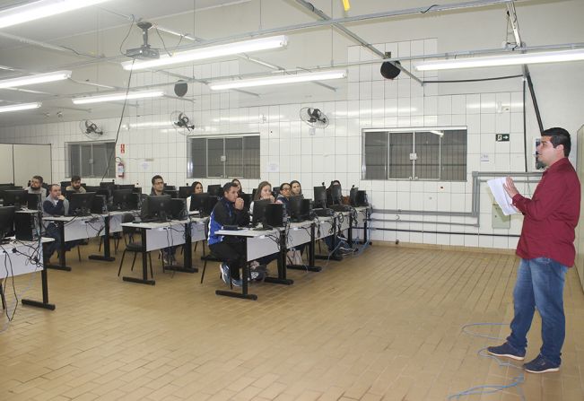 Durante a recepção, o Mediador de Ensino Ricardo Oliveira parabenizou os alunos e explicou como será a dinâmica das aulas, utilização das plataformas e horários de utilização do Polo.